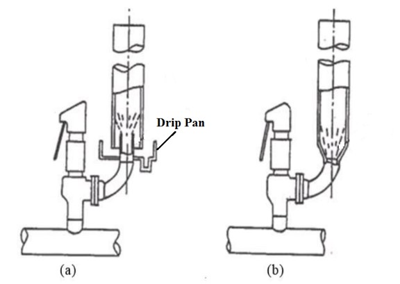 با توجه به نحوهی اتصال سایلنسر به خط جریان، سایلنسرهای مورد استفاده در این حوزه در دو نوع مناسب برای خط تخلیه باز و بسته وجود دارند. در نوع باز قسمتی تحت عنوان Drip Pan قرار دارد که به محیط آزاد دسترسی دارد درحالی که در نوع بسته این قسمت وجود ندارد. نحوهی اتصال این دو نوع سایلنسر به خط جریان در شکل 3 نمایش داده شده است. سایلنسرهای مورد استفاده در این دو طرح در ساختار درونی (عبور جریان بخار) با یکدیگر تفاوت دارند. در سایلنسرهای نوع بسته به دلیل عبور جریان از داخل مواد جاذب صوت، جریان بخار خروجی از دیفیوزر وارد محفظه انبساطی پوشانده شده با مش پد میشود. مش پد به صورت محیط متخلخل عمل میکند و ضمن عبور جریان، میزان صوت را تا میزان دسیبل خروجی مطلوب کاهش میدهد. در صورتی که در سایلنسرهای نوع باز، جریان بخار خروجی از دیفیوزر ابتدا وارد محفظه انبساط شده و سپس از فضای خالی میان ردیفهای جاذب صوت، بدون نفوذ در جاذب صوتی، عبور میکند و با کاهش نویز، شدت صوت به میزان مطلوب میرسد.