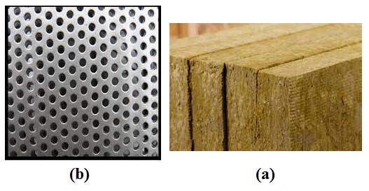 شکل 4 (a ماده جاذب صوت، (b صفحات سوراخدار.