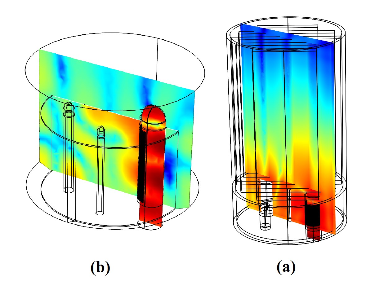 در حال حاضر در شرکت مهندسی و ساخت بویلر و تجهیزات مپنا قادر به مدلسازی دقیق اجزای داخلی سایلنسر با دقت بسیار بالا میباشد. با در اختیار داشتن این خواص، هندسه سایلنسر ترسیم و تحلیل نویز در آن به صورت سه بعدی و عددی شبیهسازی میشود. با تغییر ابعاد و سایر ویژگیهای ساختاری، تحلیل نویز تا رسیدن به دسیبل مورد نیاز کارفرما انجام میگردد. در شکل 5 نمونهای از تحلیل نویز انجام شده برای محاسبه سطح فشار صوت در سایلنسرهای بخار در دو نوع مناسب برای خط تخلیه باز و بسته را مشاهده میکنید.